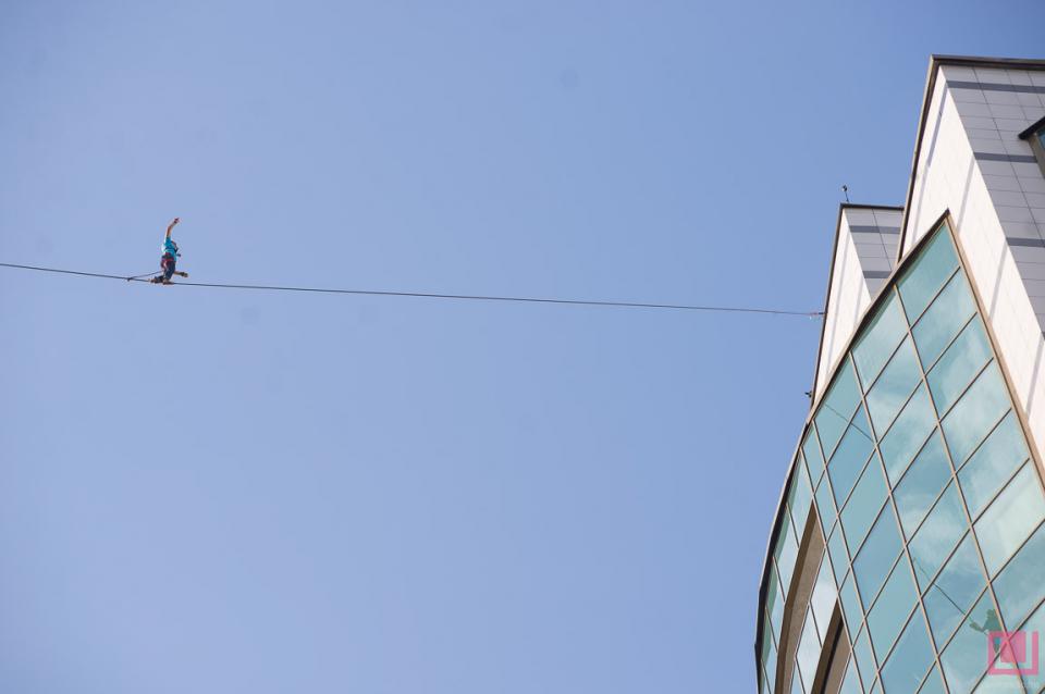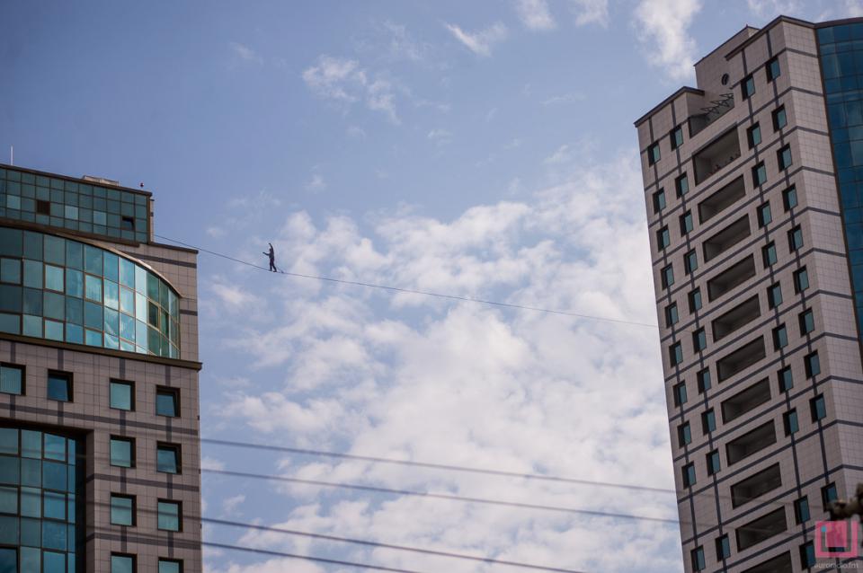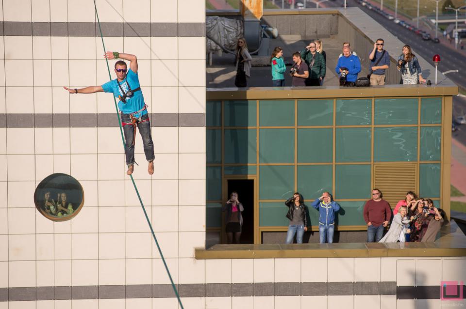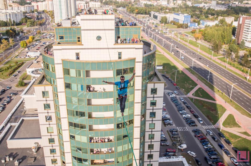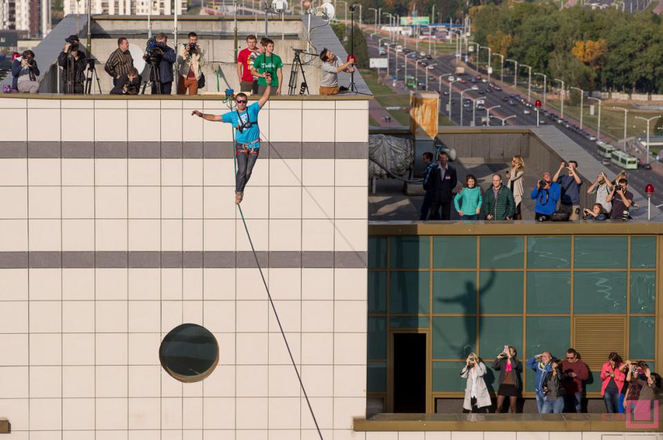 23 сентября в Минске профессиональный канатоходец прошел на высоте 70 метров между двумя многоэтажными офисными зданиями на проспекте Дзержинского — с северной башни комплекса "Титан" до "Башни Европы". Сделал это экстремал Станислав Панюта, приехавший из украинского города Днепропетровска. Он прошел по тонкому канату, натянутому на уровне 21-го этажа.