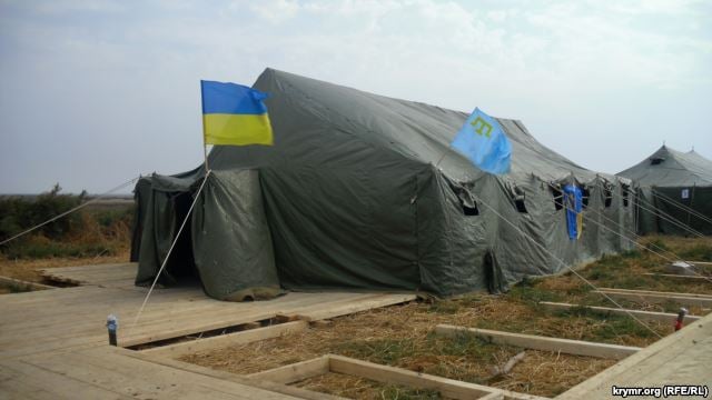 Комендант палаточного городка Дилявер Сейтумеров рассказал корреспонденту Крым.Реалии, что одна из палаток была оборудована как пресс-центр для журналистов, там же проводят заседания координационного штаба, есть раздельные палатки – для женщин и мужчин, а также палатка – для вновь прибывающих.