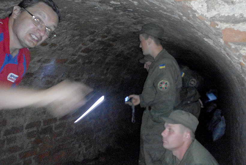 Бойцам был показан один из наиболее хорошо сохранившихся фрагментов харьковских подземелий кон. 18 – нач. 19 вв., так называемые, «Подземелья Гостиного двора», расчисткой и подготовкой к музеефикации которого, исследовательская группа фонда занимается уже не один год.