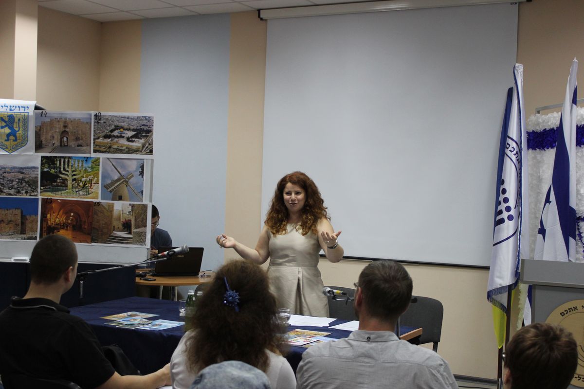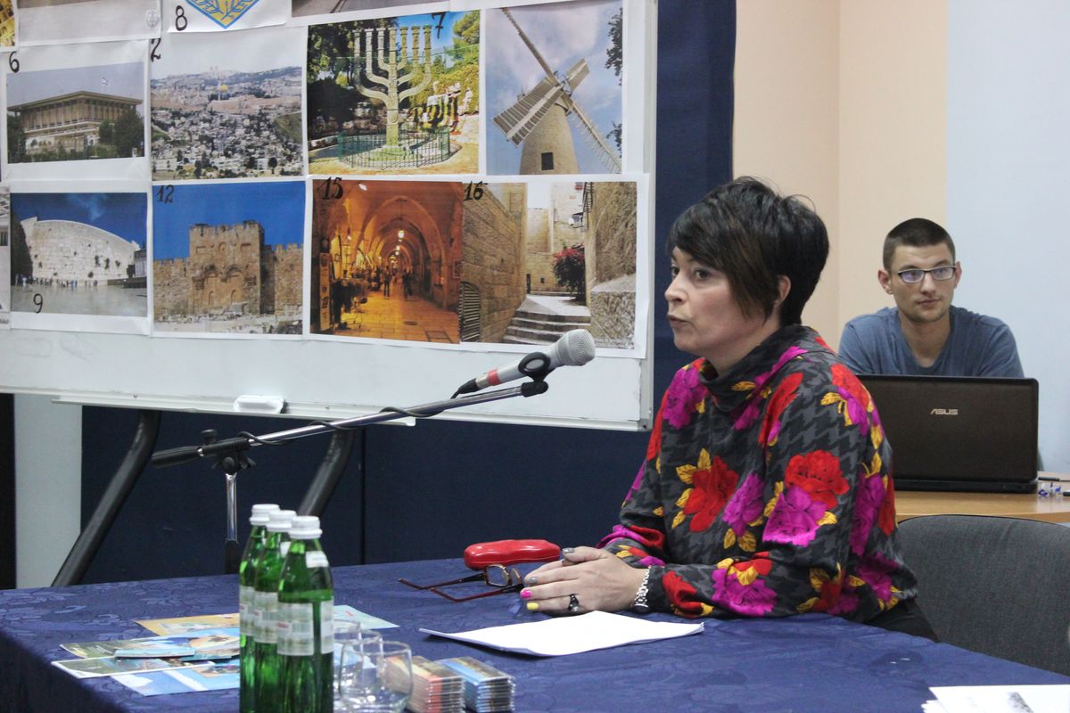 Второй секретарь Посольства Государства Израиль в Украине Нели Шульман открыла проект, конечно же, рассказом о столице Государства Израиль – Иерусалиме. Госпожа Шульман рассказала факты не только о святых местах древнего Иерусалима, но и о богатой современной культурной жизни столицы. В Иерусалиме сплетается вся история: и древняя, и нынешняя. Невозможно передать словами насколько многогранен Иерусалим. Нужно там побывать, чтобы прочувствовать его дух. Достаточно погулять по Старому городу и вас будут переполнять позитивные эмоции.
