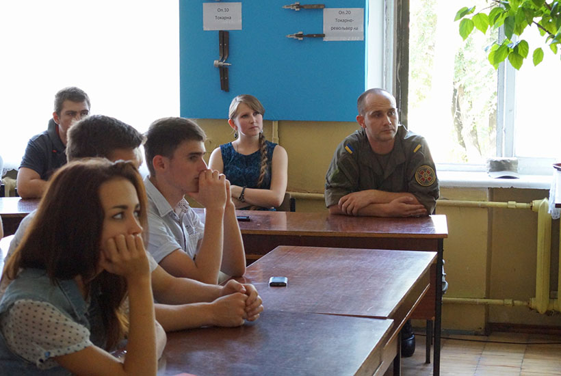 Так, 25 вересня, до Запорізького авіаційного коледжу був запрошений підполковник Євгеній Корнелюк, учасник АТО. Під час зустрічі з молоддю він розповів про будні гвардійців, які в нелегкий для країни час мужньо та самовіддано виконують свій військовий обов’язок. У спогадах про своє перебування на сході, де іде боротьба за цілісність нашої країни, він згадував імена наших загиблих товаришів, які ціною свого життя захистили рідну землю. У ході розповіді Євгеній наголосив на тому, що всі повинні бути гідними пам’яті наших героїв і своїми вчинками довести, що ми справжні патріоти своєї України.