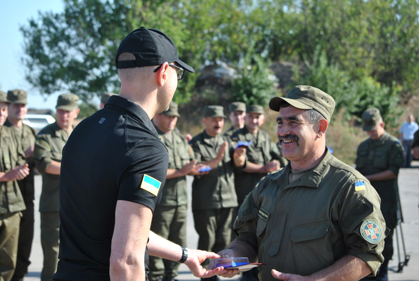 Поздравили нацгвардейцев с наградами и заместитель министра Эка Згуладзе, заместитель командующего Национальной гвардии Украины генерал-лейтенант Валерий Рудницкий, председатель Донецкой областной военно-гражданской администрации Павел Жебривский, руководитель управления МВД Украины в Донецкой области генерал-майор Вячеслав Аброськин.