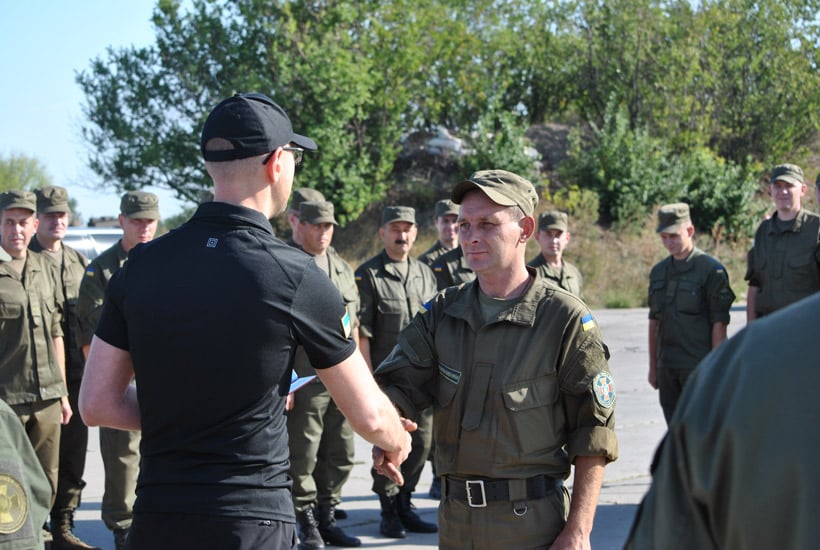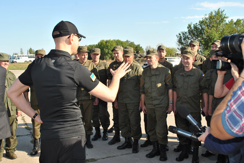 После торжественной церемонии вручения наград Арсений Яценюк и руководители ведомств в неформальной обстановке пообщались с военнослужащими Восточного ОТО. Нацгвардейцев интересовали размеры денежного обеспечения, бытовые условия и качество питания, обсуждались и вопросы отношения местного населения к бойцам. От главы Правительства Украины и главы министерства внутренних дел военнослужащие узнали о плановом повышении размера денежного содержания со следующего года и постепенном переходе всего личного состава Национальной гвардии на службу по контракту.