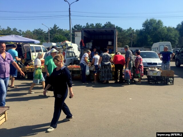 В ответ на гражданскую блокаду Крыма, которая длится уже почти неделю, местные власти решили провести ярмарку нового урожая. В двух районах Симферополя: по улице Залесской и на Москольце крымские товаропроизводители выставили свою продукцию. Однако ассортимент товаров оказался не таким широким, как предполагалось. В частных беседах продавцы жалуются на низкую покупательскую способность симферопольцев. Крым.Реалии отправились на одну из ярмарок.