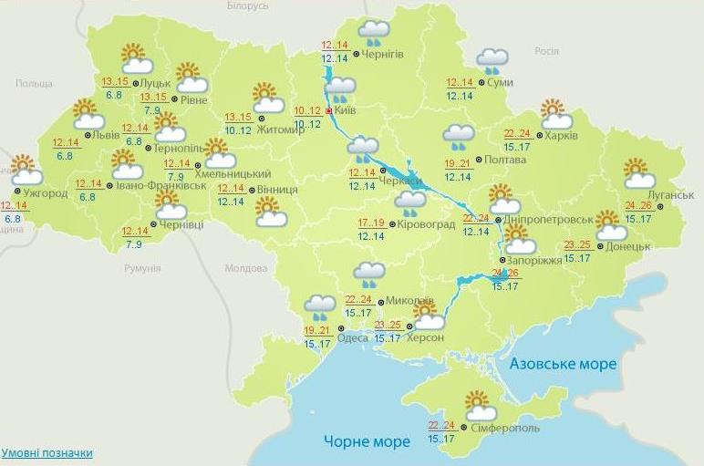 В восточном регионе ожидается температура от +22 до +26, в центральном от +12 до +21, в южном от +19 до +25, в западном от +12 до +15, в северном от +10 до +12.