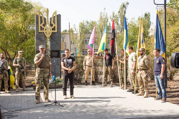 На открытии памятника присутствовали демобилизованные бойцы, горожане, а также волонтеры и запорожские активисты.