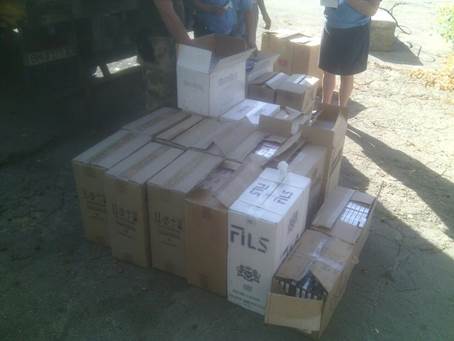 Кроме этого, сотрудники спецслужбы остановили на блокпосту две фуры. В первой было обнаружено 20 ящиков контрафактных сигарет, 380 литров водки и 100 литров коньяка в 10-ти литровых емкостях. Второй грузовик перевозил 400 литров контрафактного спирта в 5-ти литровых бутылках.