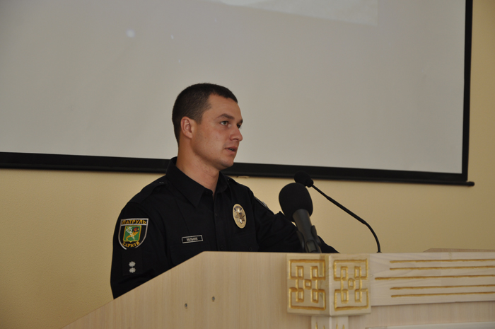 Звернувся до слухачів і начальник управління патрульної служби м. Харків Євген Мельник, який поздоровив присутніх з першим днем навчання, побажав наполегливості й витримки і запевнив, що на них чекають у новій патрульній поліції.