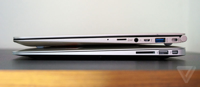 Как пишет The Verge, 14-дюймовые LG Gram не крупнее 13-дюймовых MacBook Air и Lenovo Yoga 3 Pro, а их экран (1080р) с IPS-матрицей выглядит гораздо привлекательнее. Лэптопы, которые весят чуть меньше килограмма (980 г.), легче даже 11-дюймового "макбука" Air.