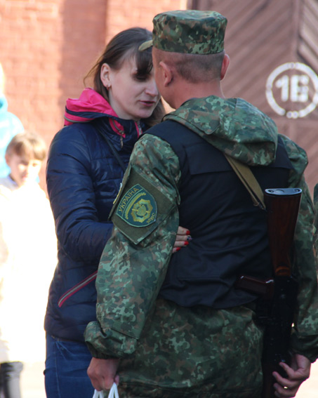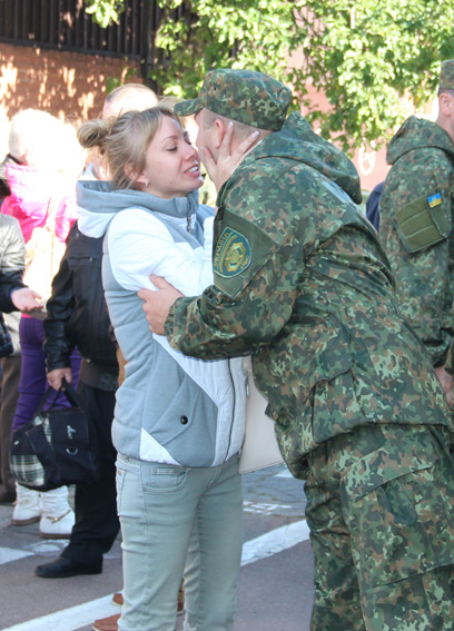 После короткого прощания с родными, друзьями и коллегами во дворе УМВД сводный отряд правоохранителей Житомирщины отправился защищать мир и правопорядок в зоне проведения АТО.