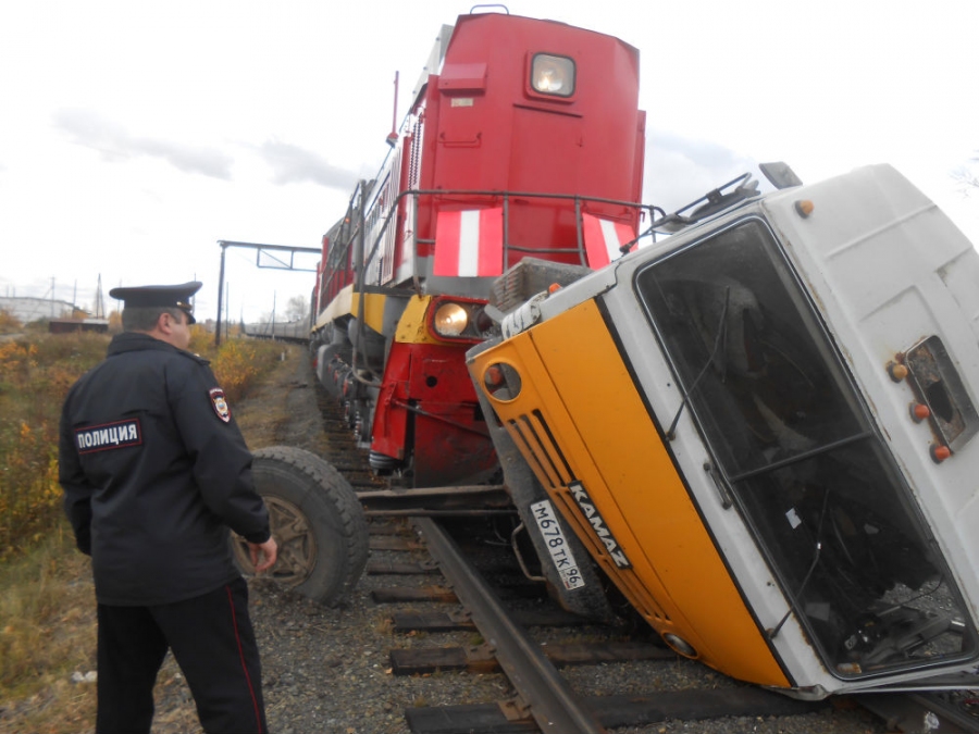 ДТП произошло сегодня утром на Свердловской железной дороге: около 11:50 в черте города Тавды пассажирский поезд врезался в КаМАЗ. Водителя грузовика уже достали из кабины и доставили в больницу, о пострадавших среди пассажиров неизвестно. Движение поездов по ветке временно приостановили.