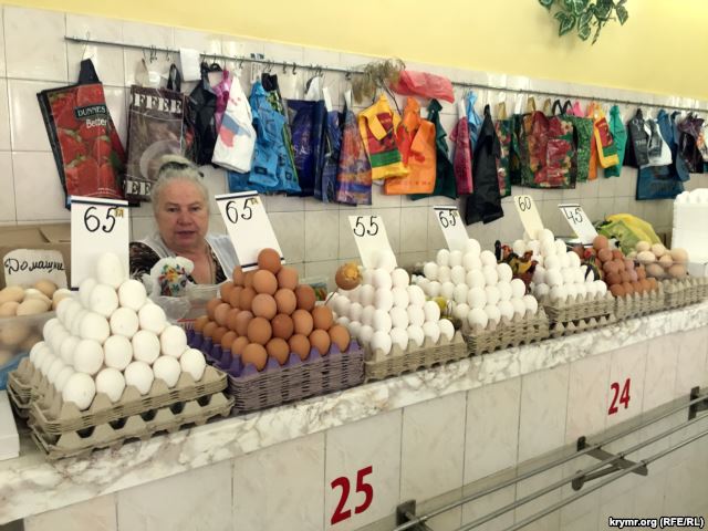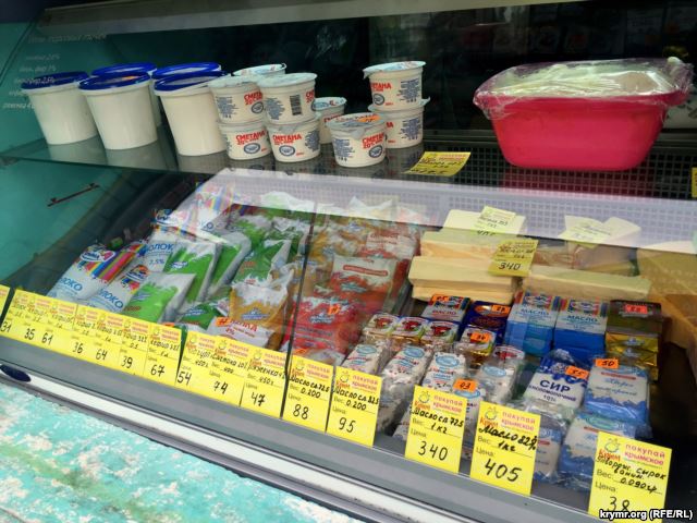 В среднем на 10% подорожала молочная продукция. Цена творога на Центральном рынке – от 150 до 170 рублей за килограмм, сливочного масла – 340 рублей, пол-литровой пачки крымского молока – 31 рубль, кефира – 35-39 рублей (450 г). «Блокада тут ни при чем, она никак не сказалась, – заверила Крым.Реалии продавщица в молочном лабазе. – У нас вся продукция местная. А то, что она подорожала – ожидаемо, скоро наступят холода, корм подорожает, к Новому году цена еще вырастет, потом коровы отелятся и цена упадет».