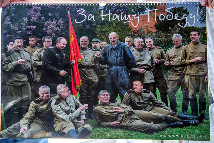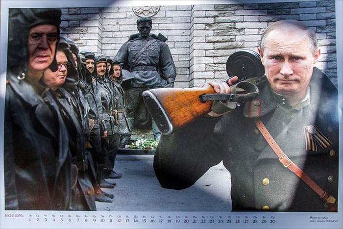 В соцсетях активно обсуждается пропагандистский календарь с «оригинальной» трактовкой событий, происходящих на Донбассе. На страницах календаря изображены российские политики, Путин, а также «лидеры» Донбасса, представленные в образе солдат и офицеров Красной Армии, сражающихся с украинскими политиками. Причем последние представлены в образе немецких нацистов. Как отмечено в комментариях, календарь производит нелепое впечатление и нарисован весьма непрофессионально.