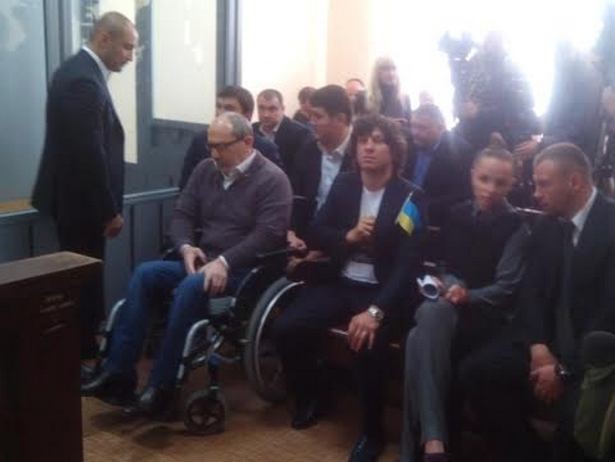 На этот раз на суд снова поддержать Кернеса приехал экс-регионал Эльбрус Тедеев. Спортсмен надел футболку с изображением Кернеса и как в прошлый раз сидит с флажком.