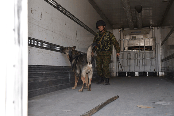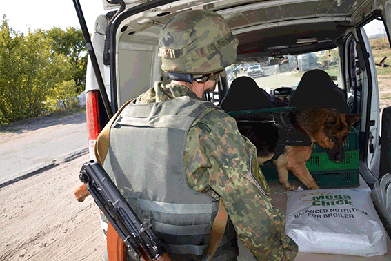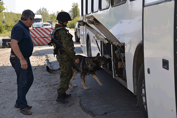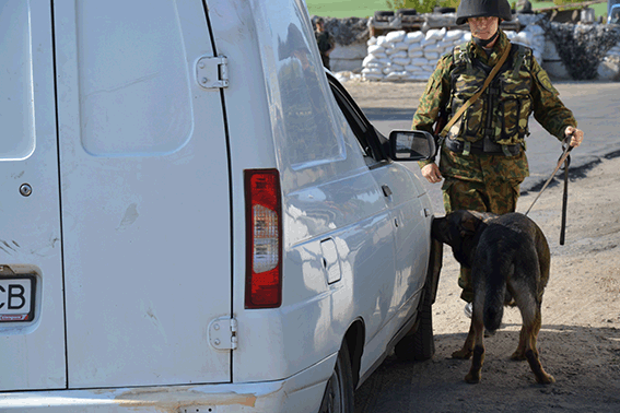 Активно служебные собаки «работают» на блокпостах, «проверяя» транспортные средства на предмет выявления наркотических и взрывчатых веществ, а также оружия.