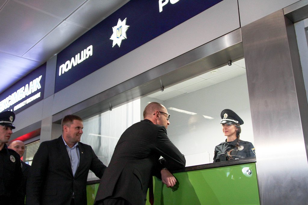 Премьер-министр Арсений Яценюк и министр внутренних дел Украины Арсен Аваков в ходе рабочего визита в Бориспольский район ознакомились с работой патрульных полицейских в международном аэропорту «Борисполь». Общественный порядок и безопасность в аэропорту с сегодняшнего дня будет обеспечивать 80 патрульных полицейских, - передает персональный сайт Арсена Авакова.