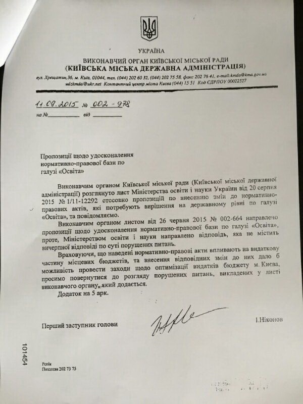 Интересно, что это уже не первая подобная переписка между киевской властью и образовательным министерством страны. В КГГА остались не удовлетворены ответом Министерства образования на их первое письмо, поэтому повторно настаивают на учете своих предложений.