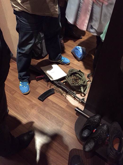 Милиционера задержали во время получения взятки в размере 20 000 гривен. Во время обыска его квартиры были изъяты автомат Калашникова, пистолет Макарова, патроны к ним и наркотики.