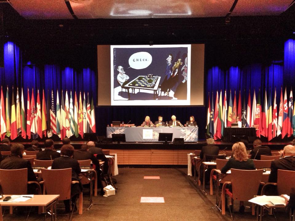 На слушаниях политического комитета парламентской ассамблеи НАТО модераторы вывели на экран карикатуру на президента России Владимира Путина.