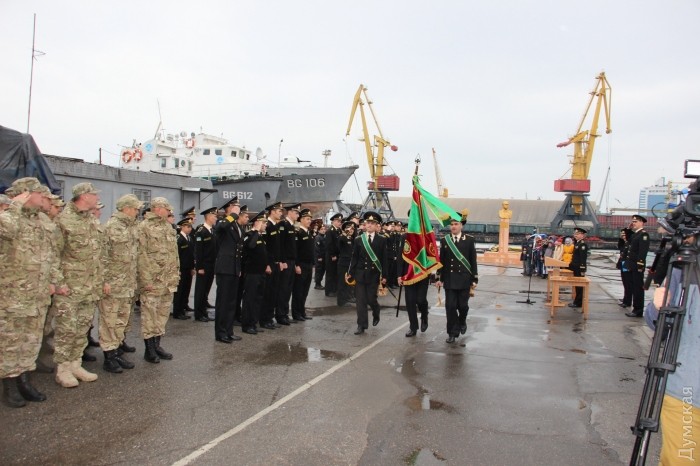 Как сообщила пресс-служба отряда, непосредственно перед торжественным митингом в пункт базирования прибыли тактические корабельно-катерные группы, которые в течение недели несли службу по охране морских рубежей. После рапорта командиров о выполнении приказа впервые перед личным составом части знаменная группа пронесла новое Боевое знамя, которое вручалось каждому военному формированию на торжественном параде в День независимости Украины.
