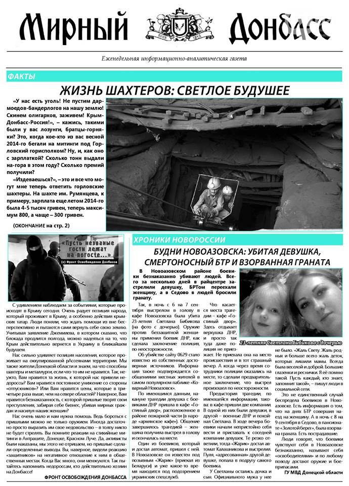Напечатан очередной номер газеты "Мирный Донбасс", в котором разоблачаются сепаратистские мифы о Донбассе.