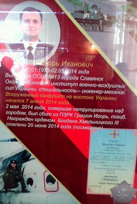 Одним з таких героїв став і випускник школи Гришин Ігор Іванович, який загинув при виконанні бойового завдання. Вертоліт, на борту якого Ігор виконував патрулювання, був збитий ворожим ПЗРК. На згадку про загиблого капітана в музеї школи було відкрито пам'ятний стенд. На заході в традиційних українських вишиванках були присутні учні старших класів школи, вчителі, представники громадськості та органів самоврядування міста.
