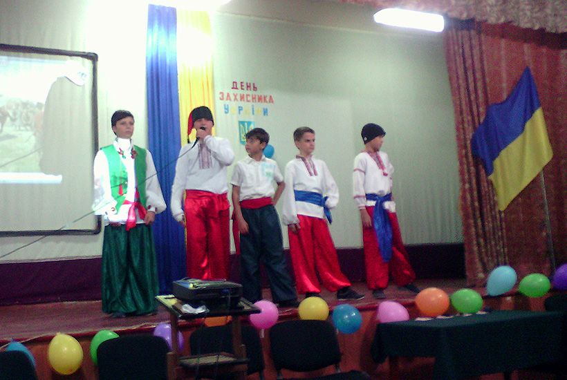 В актовому залі школи учні 3-8 класів школи привітали військових концертом. Яскравим завершенням свята став конкурс «А, нуж бо, козачата!». Учні старших класів у складі команд мали змогу позмагатися у конкурсі на ерудицію, в знанні традицій і побуту українського козацтва, показати свою кмітливість, фізичну силу і спритність. І хоча перемогла дружба, хлопці довели, що вони справжні майбутні захисники Батьківщини.