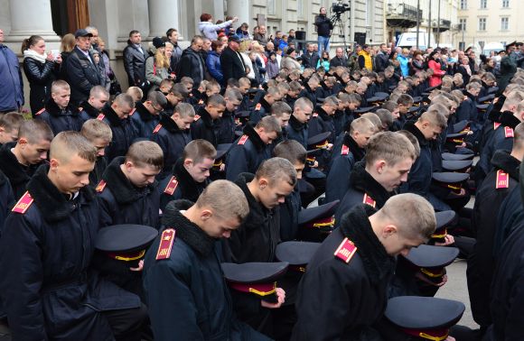 У середу, 14 жовтня, з нагоди Дня захисника України, на площі перед Львівською обласною державною адміністрацією відбулася урочиста посвята в ліцеїсти першокурсників Львівського державного ліцею з посиленою військово-фізичною підготовкою імені Героїв Крут. Цього дня на вірність Україні присягнули майже три сотні юнаків» – повідомляє Щоденний Львів.