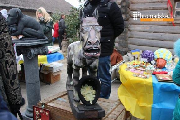 Цю скульптуру зробив харківський майстер. Де буде стояти новостворений пам’ятник, поки невідомо. Але сьогодні всі бажаючи можуть побачити його на острові Хортиця в рамках фестивалю "Покрова на Хортиці".