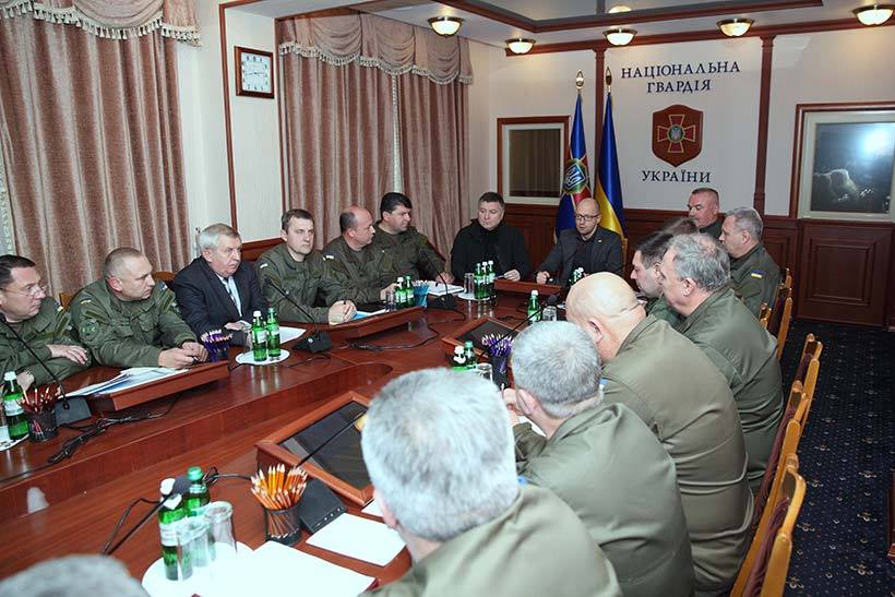 14 жовтня в Головному управлінні НГУ відбулася зустріч прем'єр міністра України Арсенія Яценюка та міністра внутрішніх справ Арсена Авакова з керівниками підрозділів Національної гвардії, де було обговорено проблеми і перспективи розвитку військового формування.