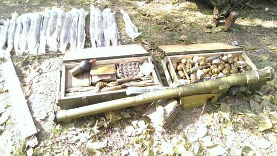Зі схрону вилучено переносний зенітно-ракетний комплекс «Ігла» з комплектуючими до нього, 53 гранати Ф1 та РГД-5, 17 пострілів до станкового гранатомета, 11 мін калібру 82 мм, 115 мінних детонаторів, велику кількість набоїв різного калібру.
