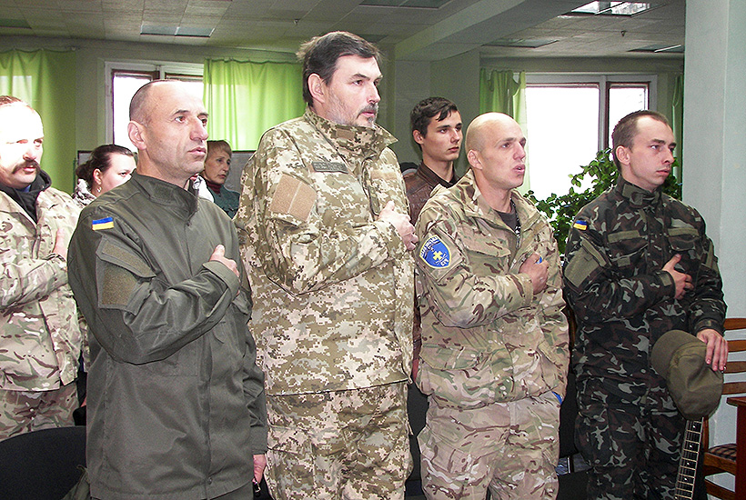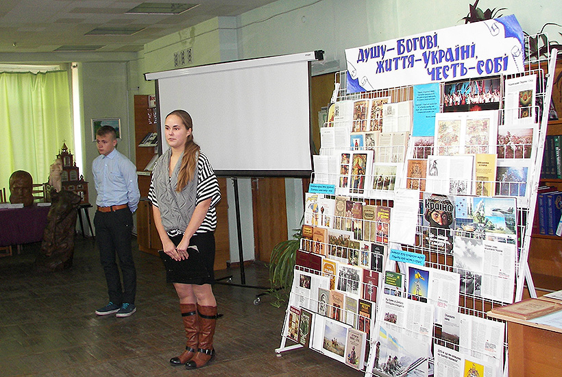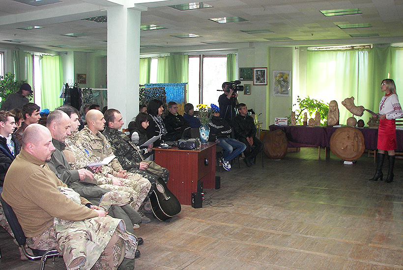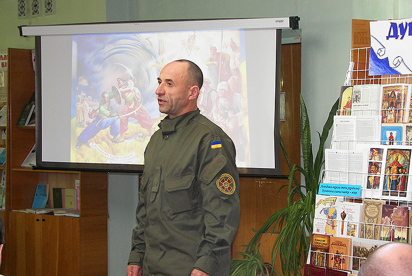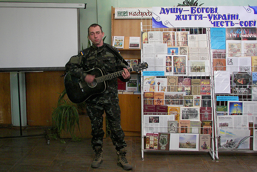 Бійці Слов’янського полку Національної гвардії відвідали центральну міську бібліотеку, де проходила година спілкування «Душу-Богові, життя-Україні, честь-собі», присвячена Дню захисника України.