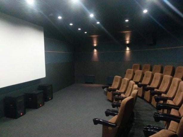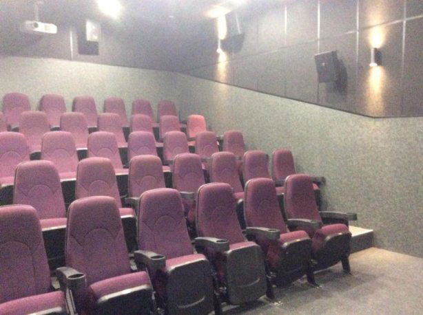 В кинотеатре два больших кинозала на 414 и на 198 мест, и четыре видеозала на 22, 33, 45 и 49 мест.