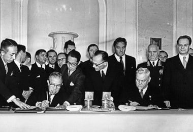 В 1956 году в Москве СССР и Япония подписали совместную декларацию , которая восстановила дипломатические отношения между этими странами и фиксировала согласие СССР о передаче Японии островов Хабомаи и Шикотан после подписания мирного договора.