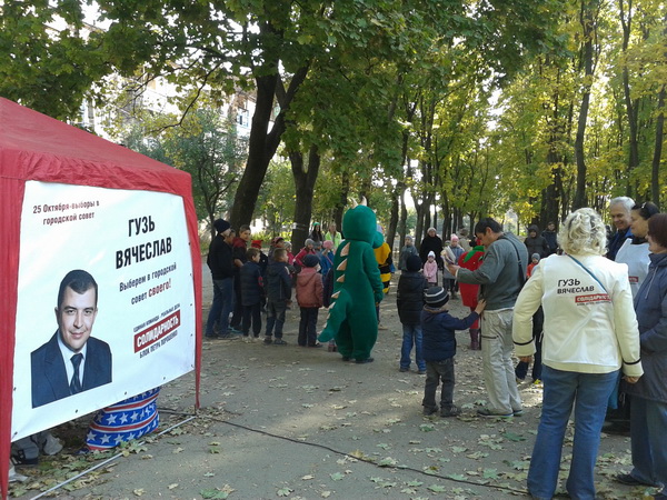 Рядом с резвившейся детворой была установлена палатка депутата, поэтому пока малыши были увлечены играми, песнями и конкурсами, их родители могли подготовить обращения к Вячеславу Гузю по волнующим их вопросам.