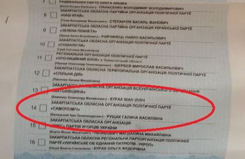 Сличко подтвердил, что все напечатанные ЦИК бюллетени для Закарпатской области являются недействительными, а это около 900 000. Причина - ошибка в названии партии «Объединение Самопомощь», которую в бюллетенях назвали просто «Самопомощь», а это, как оказалось, название совсем другой политпартии.