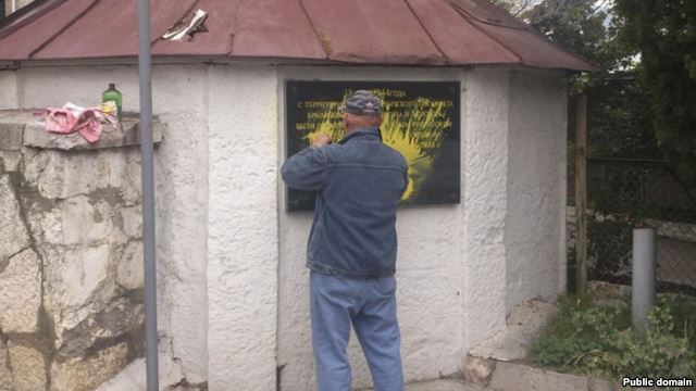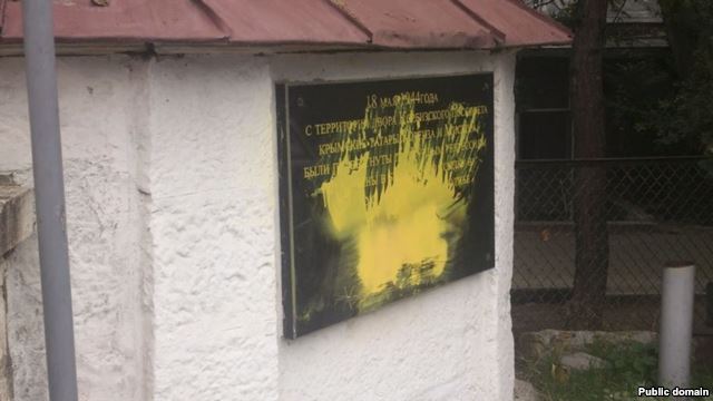 В Кореизе неизвестные облили желтой краской мемориальную доску, посвященную памяти жертв сталинской депортации 1944 года.