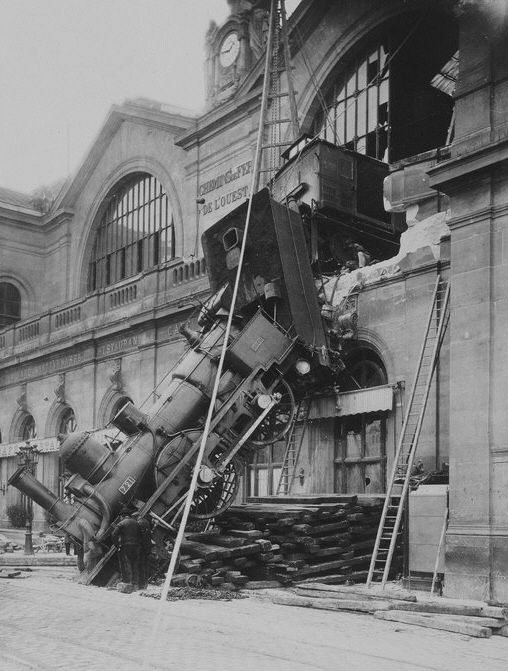 В 1895 году в парижском вокзале Монпарнас пассажирский поезд, не сумев затормозить на уклоне, выехал на перрон, пробил стену здания и упал с высоты третьего этажа на улицу. При этом ни один из пассажиров не пострадал , а крушение стало одним из самых известных железнодорожных проишествий.