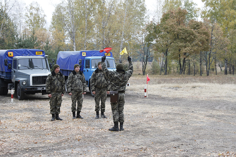 Практичні заняття курсантів проходять на автодромі у польових умовах та продовжуються вже другий день. Кожен курсант третього року навчання повинен мати загалом шістдесят годин водіння на вантажному автомобілі ГАЗ. Цей польовий вихід триватиме до 31 жовтня, а після цього нацгвардійці отримають водійські права категорії С.