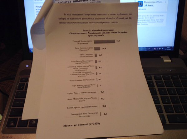 Анонимно представители КИУ опросили 3828 респондентов на 75 избирательных участках Харькова.