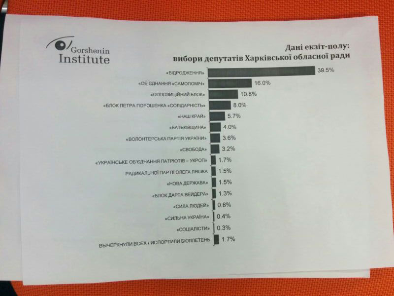 В Харьковский областной совет, по данным экзитпола, проходят 5 партий: