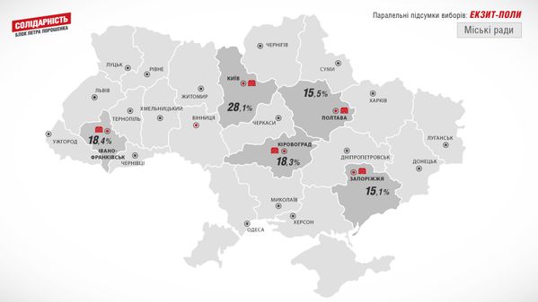 БПП "Солідарність" стверджує, що отримала перемогу на Київщині, Полтавщині, Запоріжжі, Кіровоградщині та Івано-Франківщині