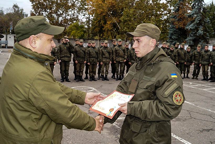 Після розважальної частини перейшли до нагородження. Спершу бійцям було зачитане привітання зі святом від командувача Національної гвардії України та начальника Південного управління, а потім кращих військовослужбовців заохочували подяками, грамотами та черговими військовими званнями.
