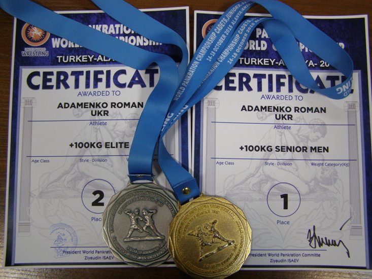 Своє високе чемпіонське звання Роман Адаменко нещодавно підтвердив на чемпіонаті світу з панкратіону, який проходив в Туреччині з 14-18 жовня 2015 року, де приймали участь спортсмени з 17 країн світу. Роман виступав у ваговій категорії більше 100 кг. За підсумками змагань зайняв перше місце з панкратіону та 2-ге місце в розділі ММА.