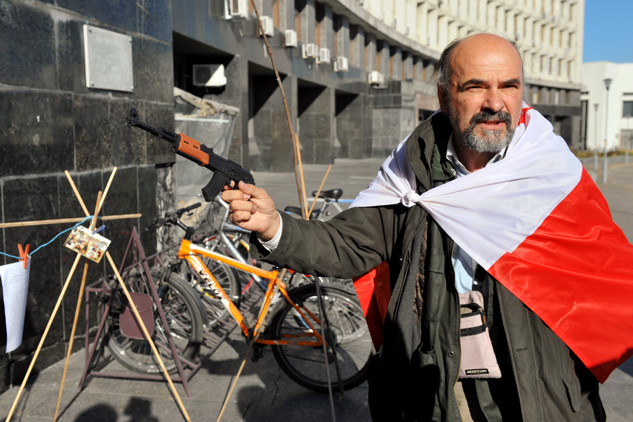 30 октября, 56-летний Януш Пьянка устроил одиночный пикет под зданием Сумского облсовета.