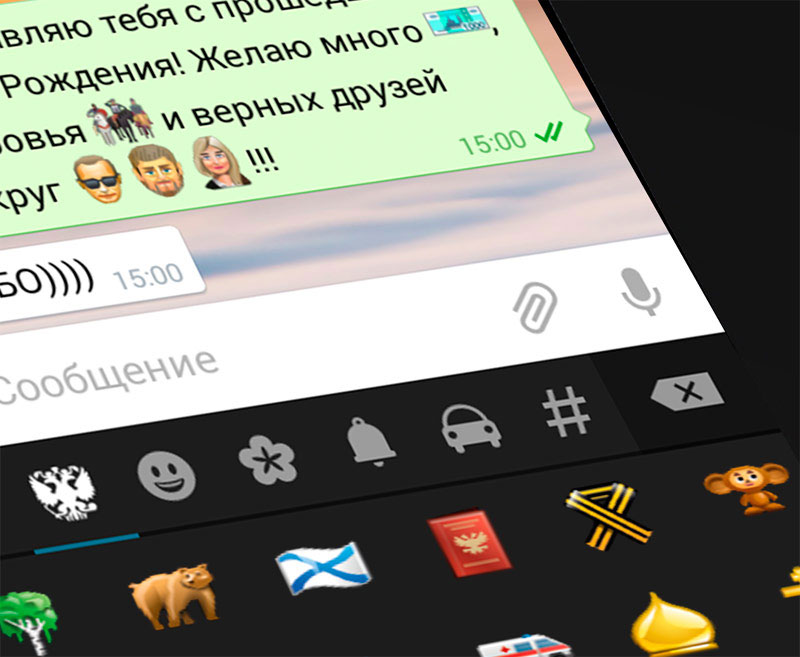 Прокремлевское молодежное движение «Сеть» выпустило патриотический набор идиограмм (смайликов «Эмодзи»). Как сообщается на сайте движения, среди почти 200 «русских эмодзи» можно увидеть Кремль, Пушкина, Чехова, новый танк УВЗ - «Армату», Чебурашку, Степашку, Крым, Рамзана Кадырова и, конечно же, Владимира Путина, сообщает "Главное".