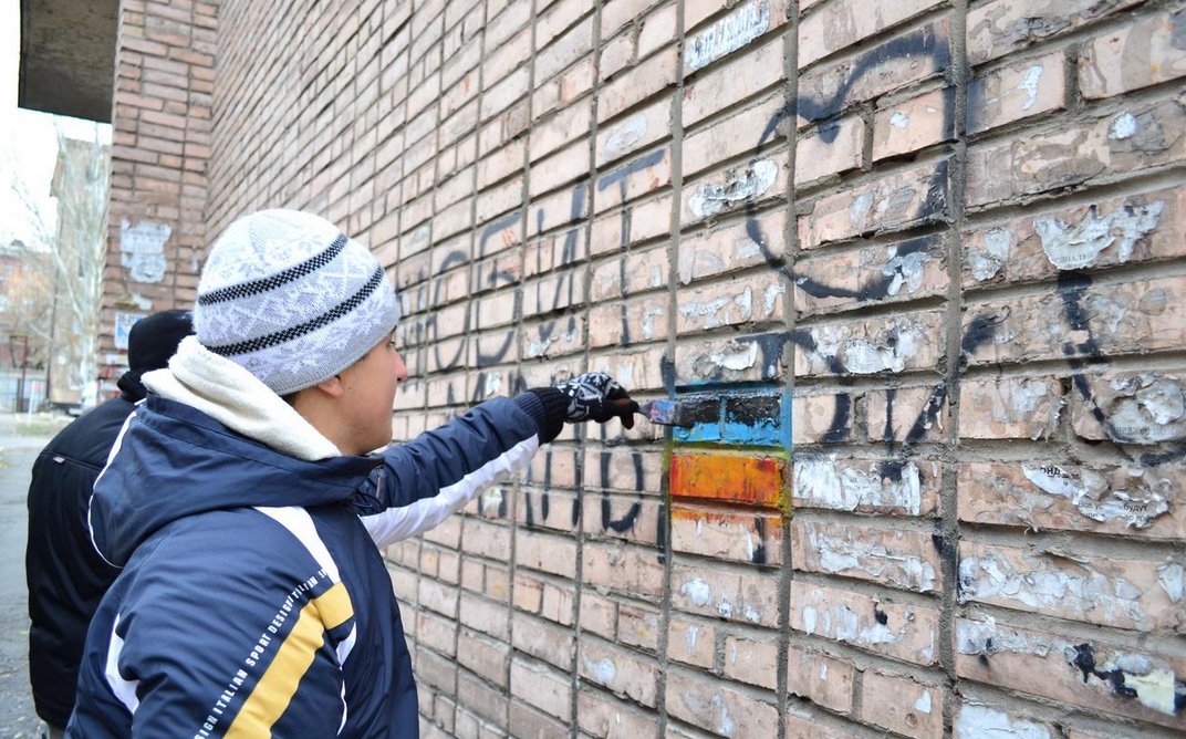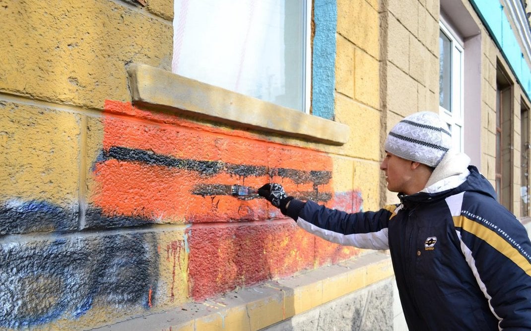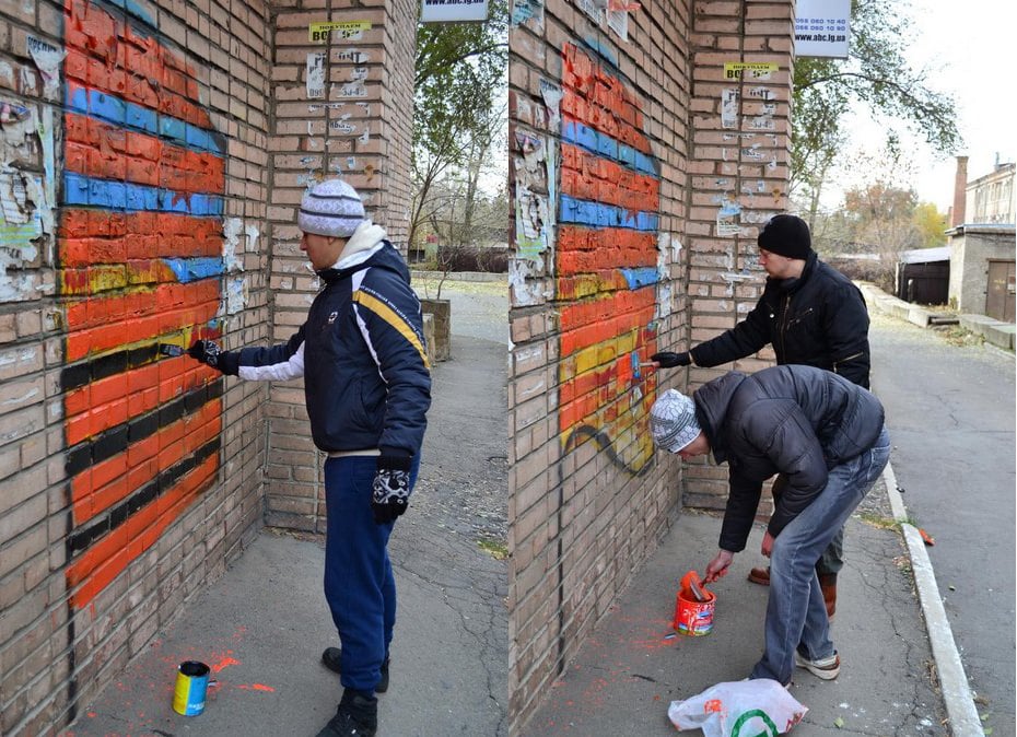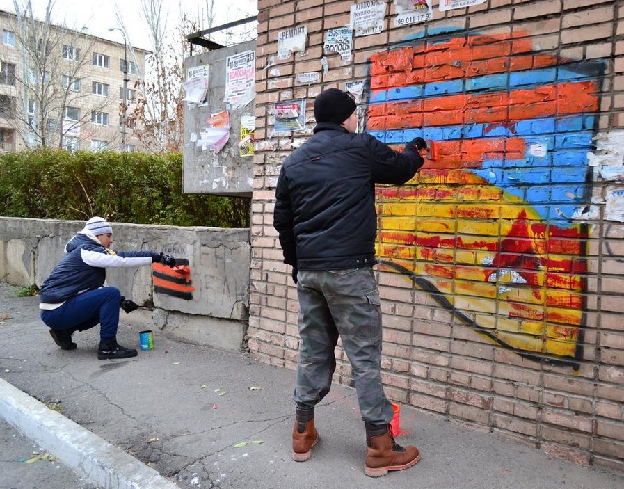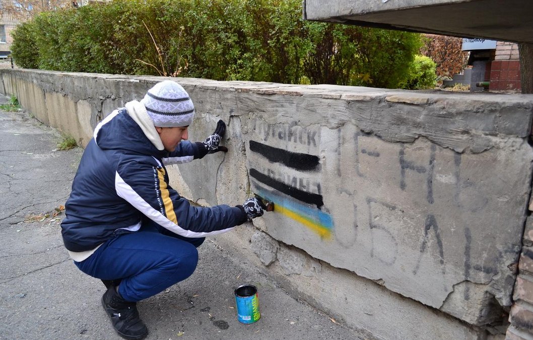 Активисты сепаратистской организации «Ассоциация молодёжи Луганщины» 1 ноября закрасили украинскую символику в Ленинском районе города Луганска оранжево-черными полосами. Как сообщает Главное со ссылкой на Информатор, в акте вандализма принимали участие около двухсот человек.