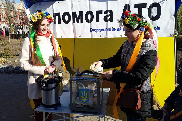 Волонтерами впродовж ярмарку були зібрані продукти харчування та засоби гігієни для бійців, а також кошти у сумі 1302 грн., із них – 654 грн. передали студенти педколеджу.