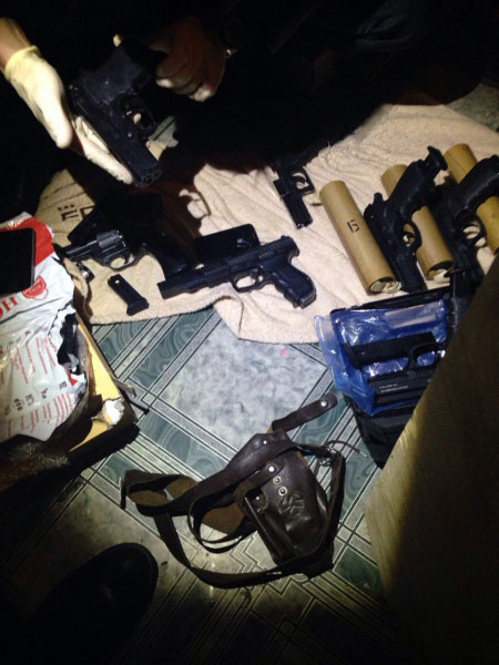 В ходе обысков полицейские изъяли 15 пистолетов и револьверов различного калибра, свыше 150 патронов, два ружья, две винтовки, дымовые шашки, запасные части к боевому оружию, холодное оружие, а также 300 граммов наркотических веществ.