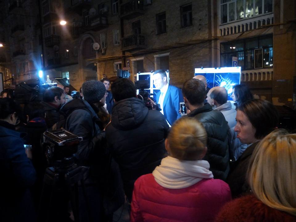 "Картина маслом... Господину Кличко что-то там показывают, какие-то планы, журналисты, камеры... а одно из авто, я так понимаю господина мэра, стоит на полосе движения общественного транспорта, еще и против движения, с нарушением всех известных правил. Вызвал полицию", - написал.